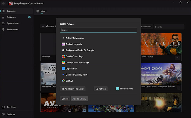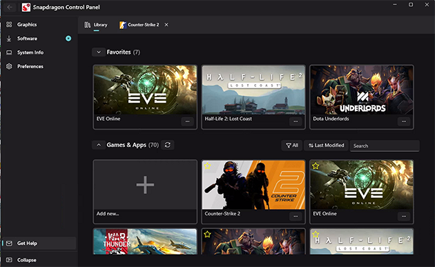 继今年早些时候推出面向开发者的Adreno控制面板后,高通正式面向所有用户开放了骁龙控制面板。全新的控制面板能够自动检测用户在设备上安装的游戏,包括Steam库中的游戏,允许用户通过应用程序配置文件管理器修改设置,以优化画质和性能。