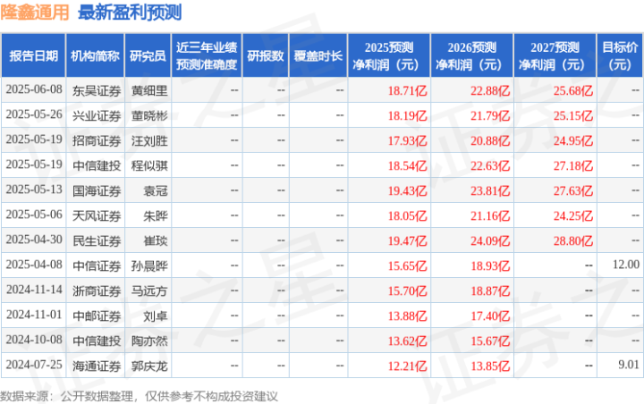 最新盈利预测明细如下: